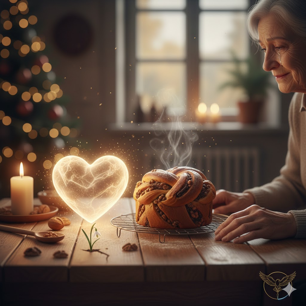 Ei bine, spune mama, odată cu făina adaug dorința de a ține familia unită. Laptele îl combin cu blândețe și grijă. Zahărul reprezintă tandrețea și răsfățul, iar cu uleiul adaug multă răbdare. Când pun ouăle mă gândesc la legătura strânsă dintre mine și voi. Cu sarea dau sens și scot în evidență dulceața vieții. Drojdia o pun cu entuziasm pentru ca aluatul să crească și, în același timp, și bucuria voastră. Cu nuca vă hrănesc creierul și vă susțin să ajungeți la maturitate. Când pun cacao mă gândesc cu seriozitate că aroma pe care o va da gustului vă va face să vă amintiți de mine mereu. Ca să vă amintiți de copilărie, pun zahăr vanilat. Și când pun esența de rom, îmi doresc să vă întăresc caracterul.